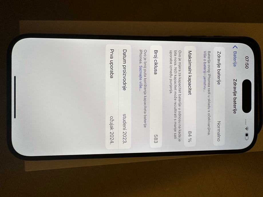 Zdravlje baterije je 84%