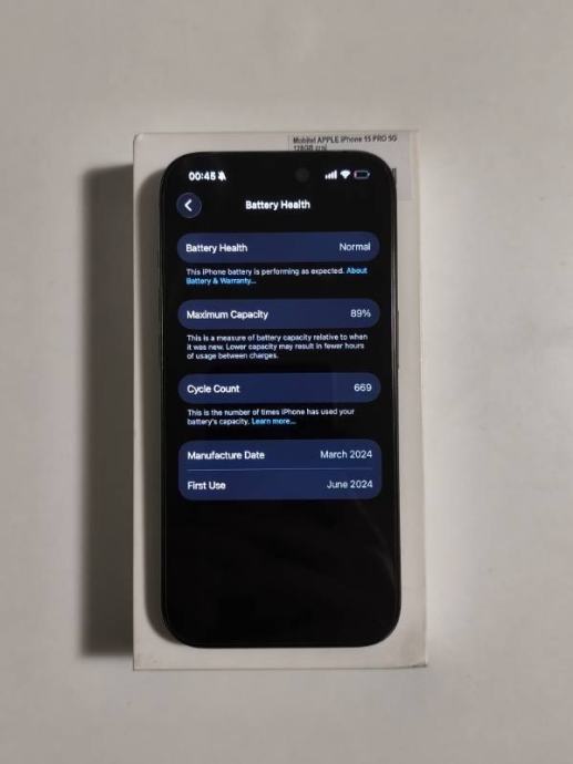 Battery health je 89%.