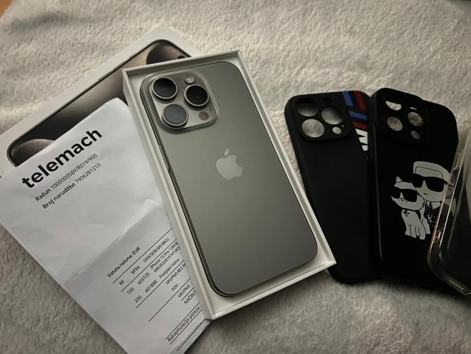 Prodaje se iphone 15 Pro očuvan od prvog dana kaljeno staklo zaštita za zadnju kameru, bez ijedne crtice na sebi, zdravlje baterije 88%, sutra ističe garancija, Telemach račun , cijena 470e nije fiksno