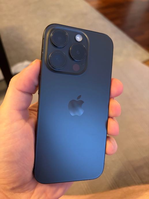 Prodajem iPhone 15 Pro u plavoj boji. Telefon je potpuno ispravan i radi bez problema. Trostruki kamerski sustav s LiDAR senzorom, karakterističan titanijski okvir i dinamični otok na ekranu. Uređaj je čist i uredno održavan. Mala ogrebotina sastrane.