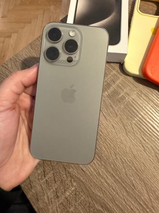 Prodajem iPhone 15 Pro u prirodnoj titanij boji. Uređaj dolazi s originalnom kutijom te tri maskice. Nikad razbijan, nosen u masci , bez ikakvih tragova koristenja!