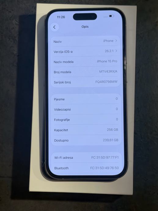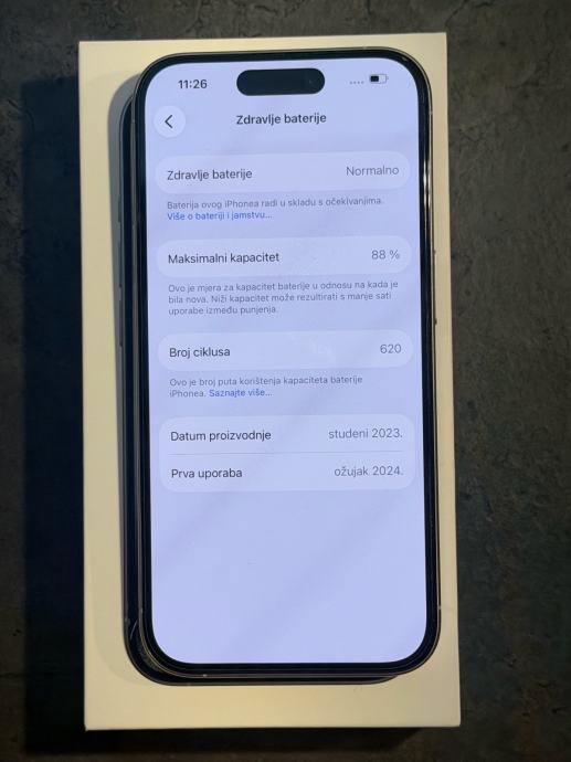 Prodajem iPhone 15 Pro od 256Gb memorije u bijeloj boji. Mobitel je u savršenom stanju bez ikakvih tragova korištenja kao šta se vidi na slikama. Na ekranu je zaštitno staklo od prvog dana. Zdravlje baterije je na 88% kapaciteta. Na uređaju nikada nije ništa mijenjano ili popravljano te je sve ispravno.Radi na sve mreže.