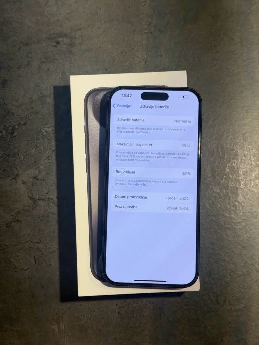 Prodajem iPhone 15 Pro od 256Gb memorije u crnoj boji. Mobitel je u savršenom stanju bez ikakvih tragova korištenja kao šta se vidi na slikama. Na ekranu je zaštitno staklo od prvog dana. Zdravlje baterije je na 90% kapaciteta. Na uređaju nikada nije ništa mijenjano ili popravljano te je sve ispravno.Radi na sve mreže.