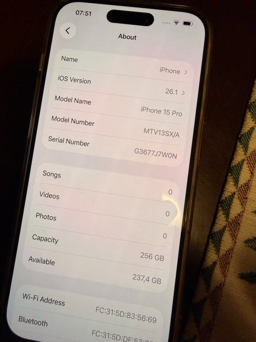 • Model: iPhone 15 Pro