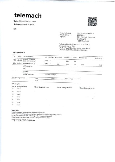 Mobitel je u izvrsno stanju, kupljen u Telemachu te imam račun.