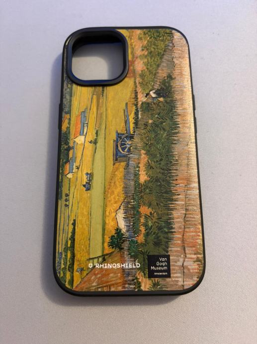 Maskica koja dolazi uz mobitel je nova novcata iz kutije RhinoShield Solidsuit, slika na pozadini Van Gogh - Žetva. Kaljeno staklo je također Rhinoshield, izuzetno otporno na udarce i ogrebotine.