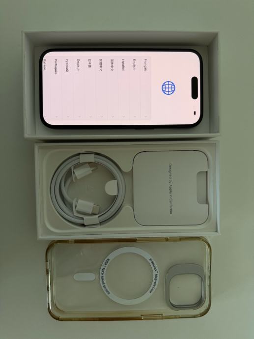 • U kompletu dolazi originalna kutija, neiskorišteni originalni USB‑C kabel, dokumentacija i ESR MagSafe maskica.
