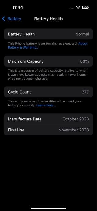 • Stanje baterije: 80% maksimalnog kapaciteta (vidljivo na fotografiji).