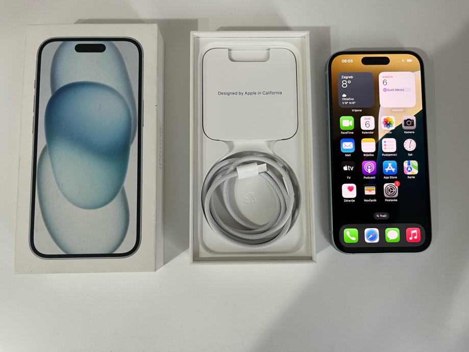 iPhone 15, 128 GB, NOVO, 100% baterija, garancija