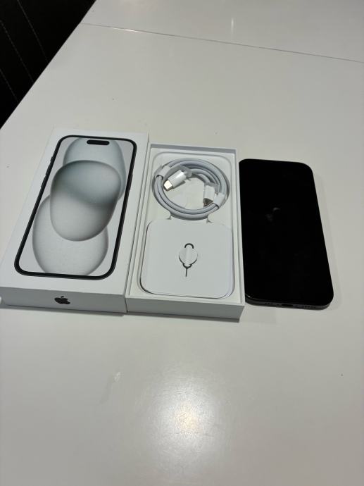 Prodajem iPhone 15 s 128 GB memorije u crnoj boji. Telefon dolazi u originalnoj kutiji zajedno s USB-C kabelom za punjenje. Ima par sitnih crtica na zaslonu,kao nov. Kupljen 20.10.2025. Račun, garancija. Baterija na 100%. Kontakt broj 091 235 6564.