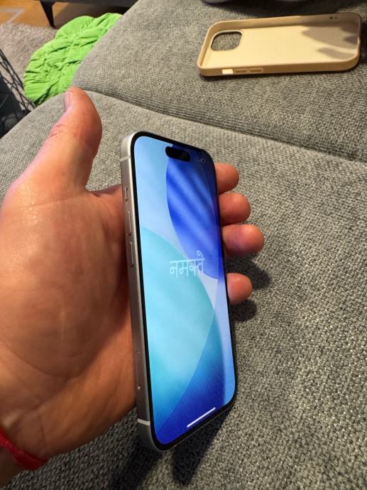 Prodajem rabljeni iPhone 15 s 128 GB memorije u bijeloj boji. Radi se o standardnom modelu s poznatim dual kamera sustavom na stražnjoj strani. Okvir uređaja je aluminijski u srebrnoj boji.Baterija nismo slikali prije reseta ali na oko 90 posto kćer ga pazila i mazila..
