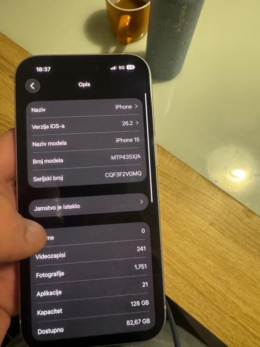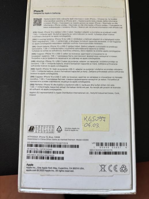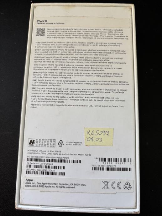 Iphone 15, 128GB, 87% baterija 521 ciklus, savrseno stanje