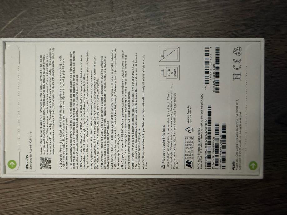 iPhone 15 128gb Black NOVO, ZAPAKIRANO !!