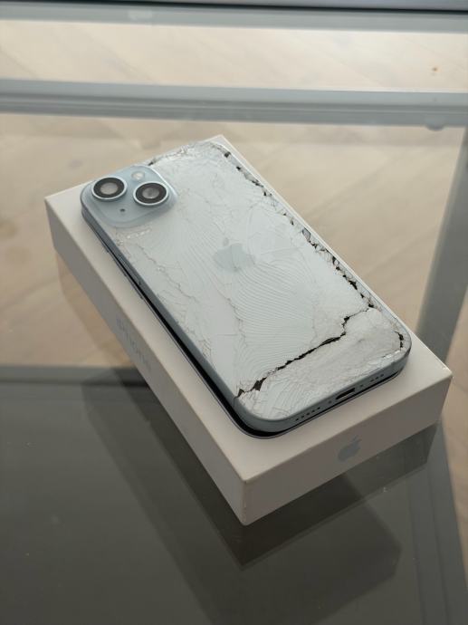 Prodaje se osteceni ali funkcionalni iphone 15 128gb blue, mobitel radi normalno osim zadnjeg stakla koje je razbijeno, lcd i prednje staklo ispravni. Stanje vidljivo u slikama. Baterija 75%