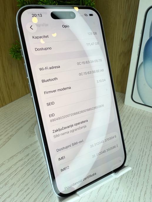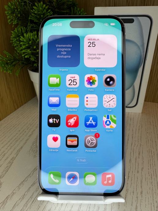 Prodajem navedeni iPhone 15 - 128Gb u babyblue boji. Mobitel je kupljen 17.02.2025, ima garanciju jos pola mjeseca.