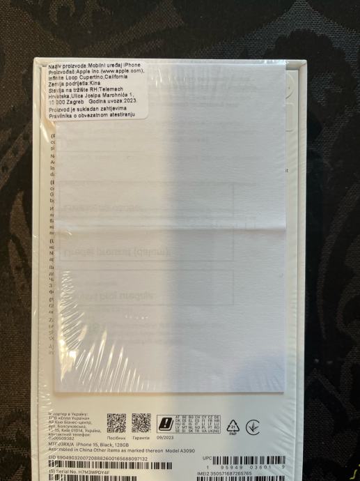 Novi iPhone 15 crni 128 GB, originalno zapakiran, račun i jamstvo.