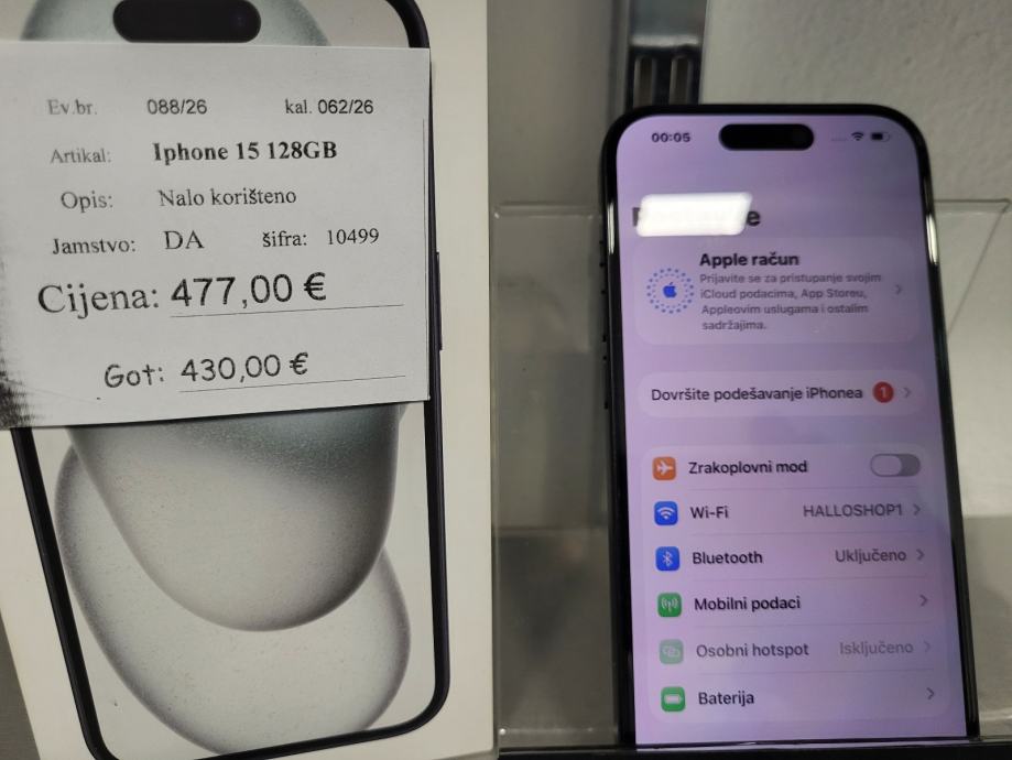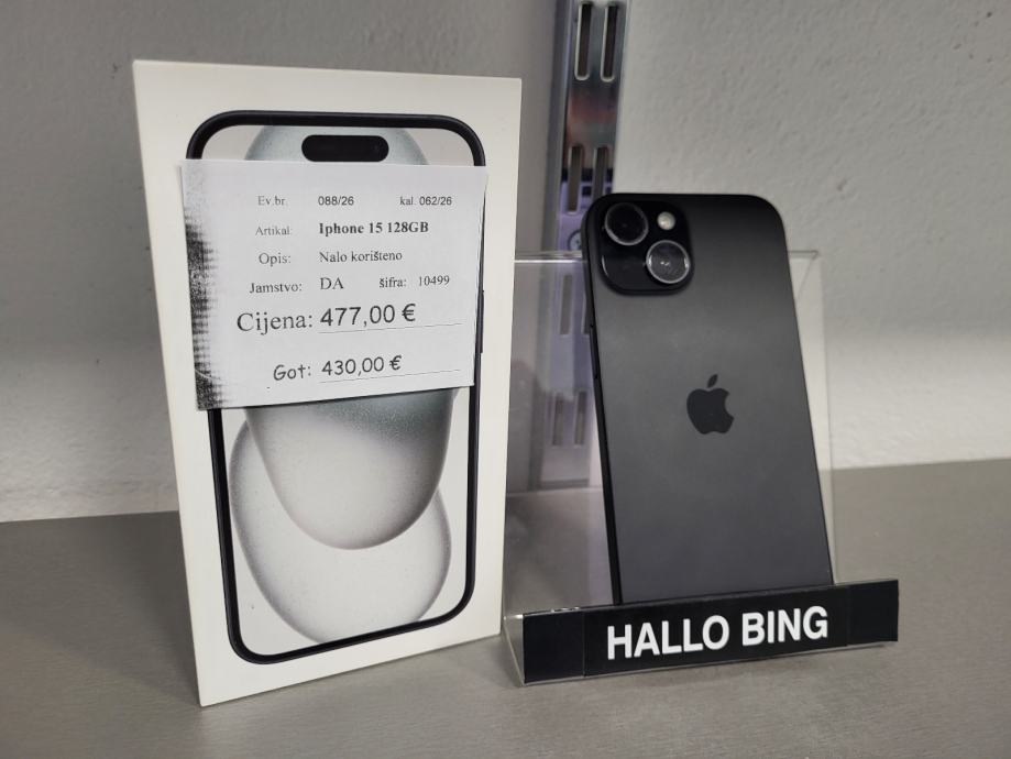 Iphone 15 128gb top stanje, baterija 85%, racun, jamstvo do 24.09.2026. Besplatna dostava BoxNow.