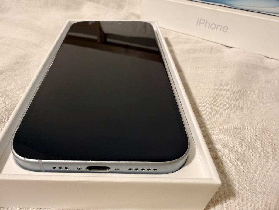 iPhone 15 128gb. Baterija 90%. Uz njega dolazi originalna kutija. Prodaje se bez USB-C kabela i punjača.