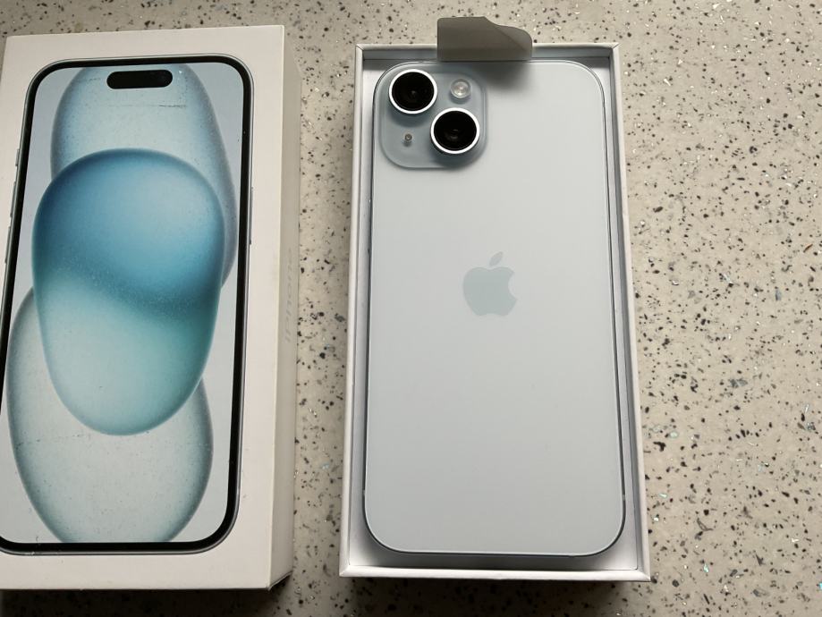 iPhone 15 128GB blue.Stanje 10/10,potpuno ispravan,nije u garanciji.Baterija je na 86%.Kutija,kabl uz mobitel.
