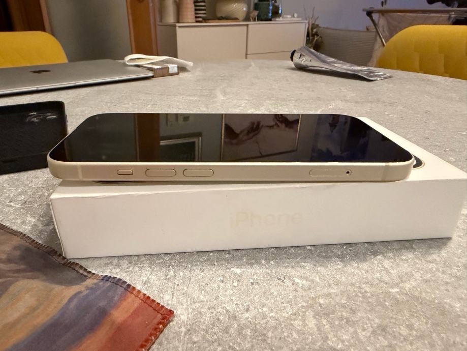 Prodajem rabljeni iPhone 15 s 128GB memorije u žutoj boji. Uređaj dolazi s originalnom kutijom i 2 maske