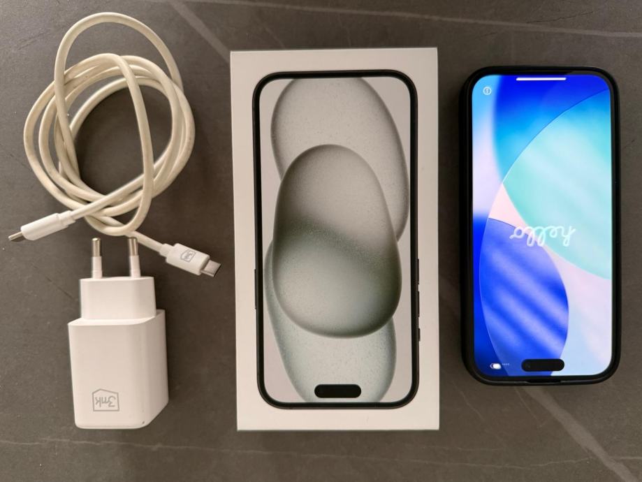 Prodajem rabljeni iPhone 15 s 128GB unutarnje memorije. Uz mobitel dolazi originalna kutija te punjač s USB-C kabelomi i magsafe maskica.