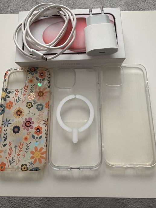 Apple iPhone 15, 128GB Pink, kupljen u iSTYLE-u 09.05.2024. g. Nema niti jednu ogrebotinu, cijelo vrijeme ima staklo na ekranu i maskice.