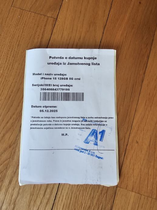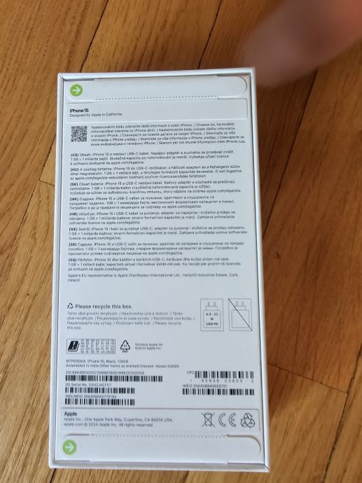 iPhone 15 Black 128Gb Nov Zapakiran garancija 2godine.Kupljen u A1 5.12.2025.Otkljucan na sve mreze.Uz mobitel dolazi garancija,racun.Moze poziv ili sms.