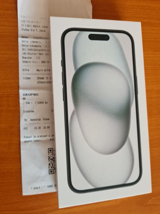 iPhone 15, Black, 128GB, radi na sve mreže, račun, garancija 23mj.