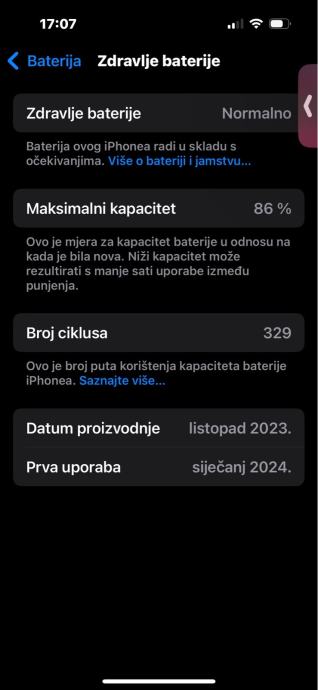 Prodajem iPhone 15, star skoro godinu dana. Telefon je u odličnom stanju, pažljivo korišten i bez ikakvih oštećenja. Baterija ima 86% kapaciteta, što znači da još uvijek osigurava izvrsnu izvedbu i dugotrajnu upotrebu. Ekran i tijelo su u savršenom stanju, bez ogrebotina ili bilo kakvih vidljivih oštećenja. Telefon ima 128 gb memorije.