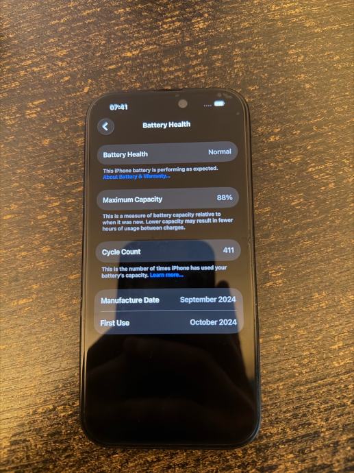 Jako dobro očuvan, uvijek nošen u maskici te sa zaštitnim staklom koje je nedavno napuklo (vidi slike), ali je ekran uređaja neoštećen. Baterija stoji na 88% te je uredno punjen u cca 410 ciklusa.