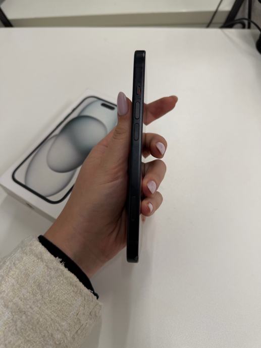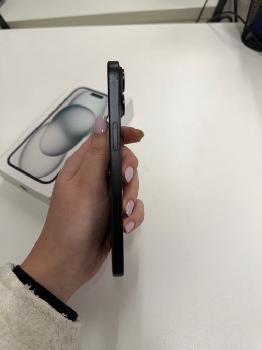 Prodajem iPhone 15 crne boje s 128 GB memorije. Mobitel je u odličnom stanju i radi besprijekorno. Ima par sitnih ogrebotina koje su vidljive na slikama. Zdravlje baterije: 86%