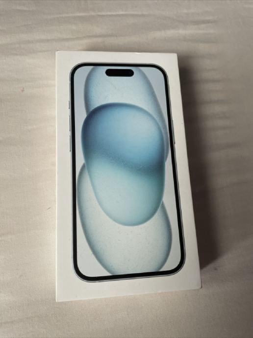 Novi iPhone 15 Blue 128 GB zapakiran u vakuumu, račun i jamstvo.