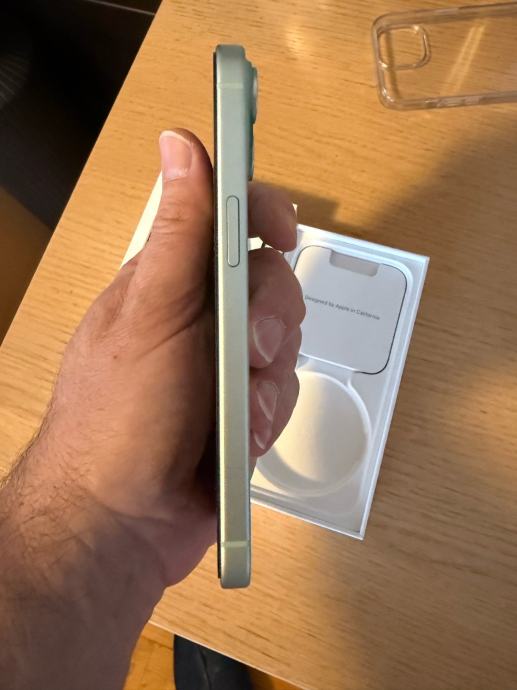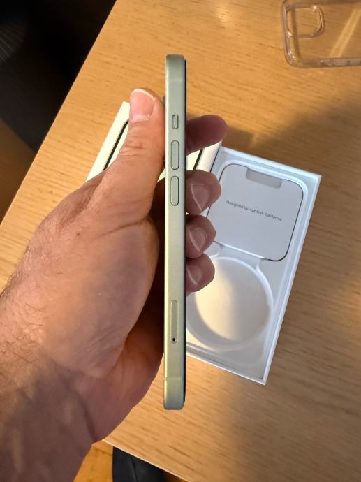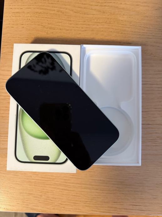 Prodajem rabljeni iPhone 15 u zelenoj boji s 256GB. Uređaj dolazi u originalnoj kutiji. iPhone je malo korišten, bez ijedne ogrebotine i u savršenom stanju.