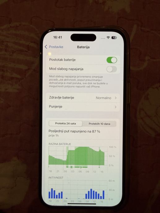 Zdravlje baterije je 84% ( izdrži cijeli dan bez problema ).