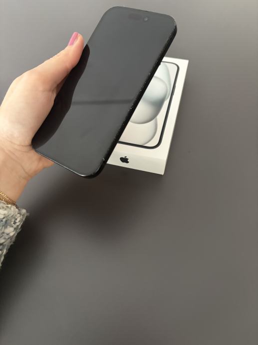 Prodajem iPhone 15, crne boje,128GB, a stanje baterije je na 88%. Godina proizvodnje uređaja je 2023.