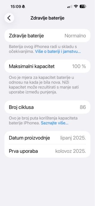 Prodajem iPhone 16 Plus s 128 GB memorije u crnoj boji. Telefon je u odličnom stanju i potpuno ispravan. Dolazi s originalnom kutijom i svim priborom. 4 maskice, iPhone 16 Plus - veći ekran, kvalitetne kamere i sve najnovije značajke iOS sustava. Kupljen 8.2025, baterija 100%, jamstveni list.Postavljen na zadnji iOS.