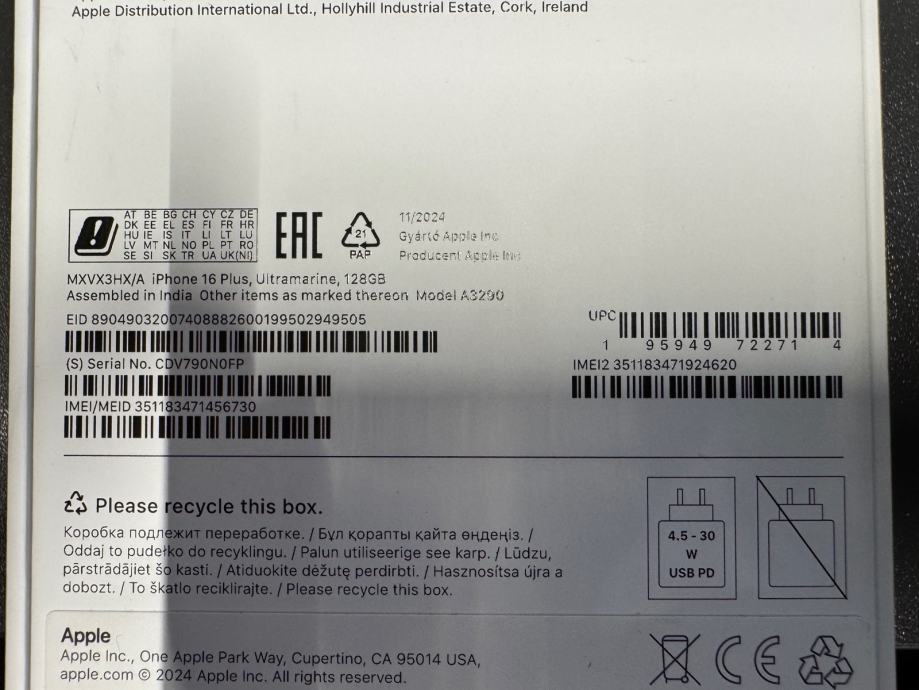 Model: iPhone 16 Plus (A3290 - MXVX3HX/A)
