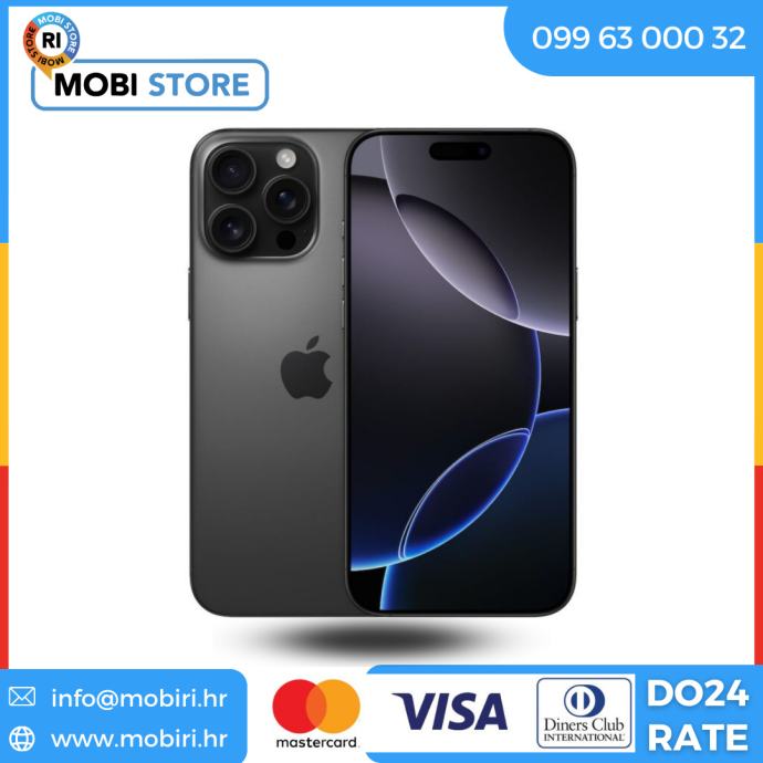 Apple iPhone 16 Pro Max Black Titanium, zapakiran, 》WWW.MOBIRI.HR《