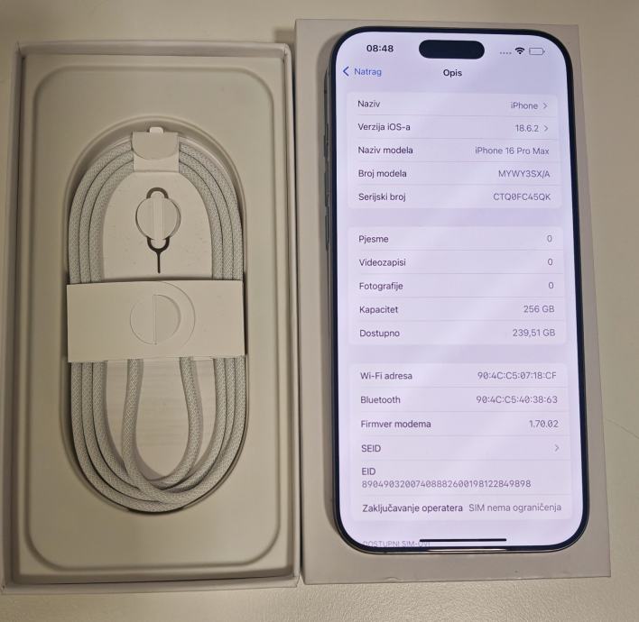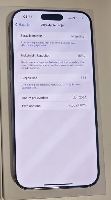 Prodajem rabljeni iPhone 16 Pro u titanium sivoj boji s kapacitetom od 256 GB. Uređaj dolazi s originalnim kabelom i pakiran je u originalnoj kutiji. Baterija je u odličnom stanju kapacitetom od 90%.