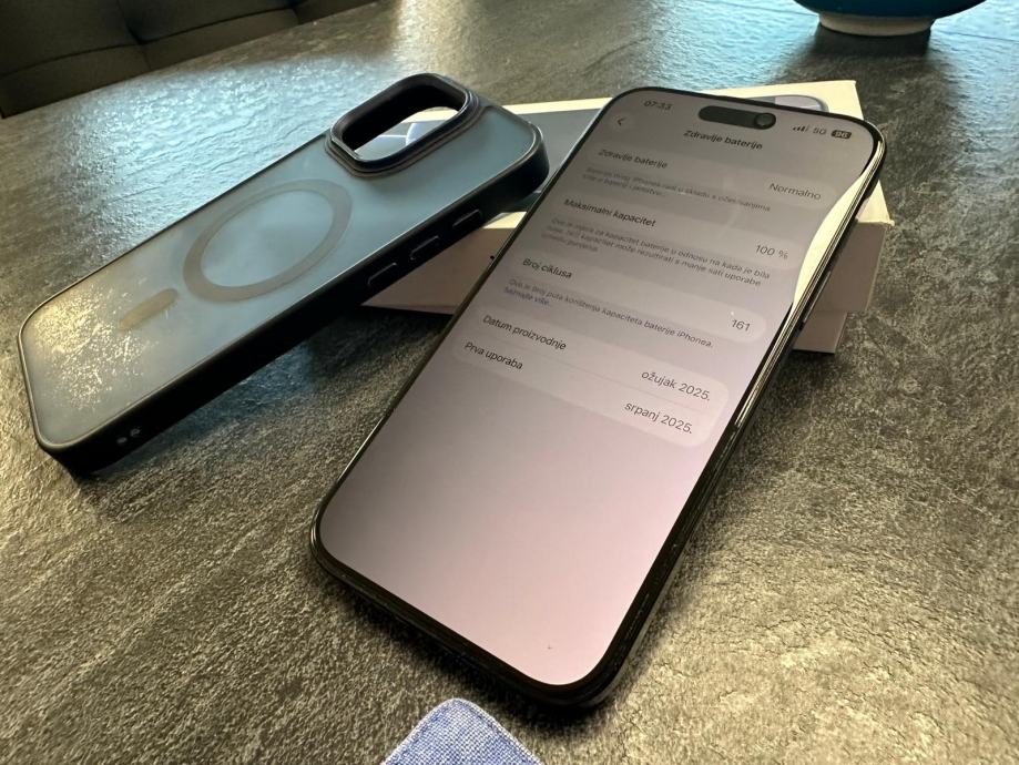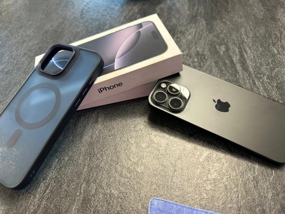 Iphone 16 pro max 256gb. Mobitel je star 7 mjeseci. Tvornicko jamstvo jos 5 mjeseci. Baterija 100%. Zastitno kaljeno staklo tamno,maskica,bezicni punjac,kutija.