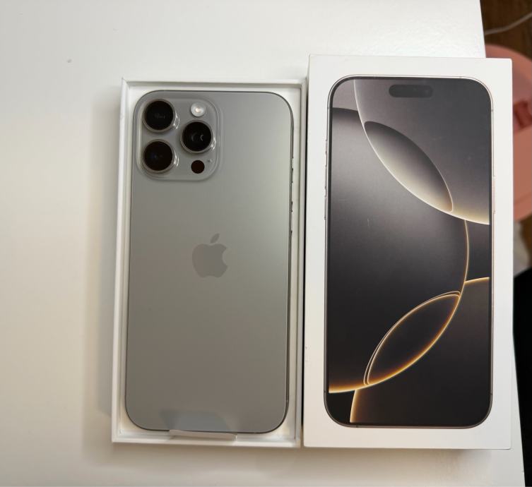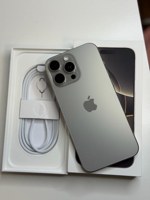 Prodajem iPhone 16 Pro Max 256 GB u titanium boji. Kupljen prošle godine u ožujku, znači ima još cca mjesec i pol dana garancije.