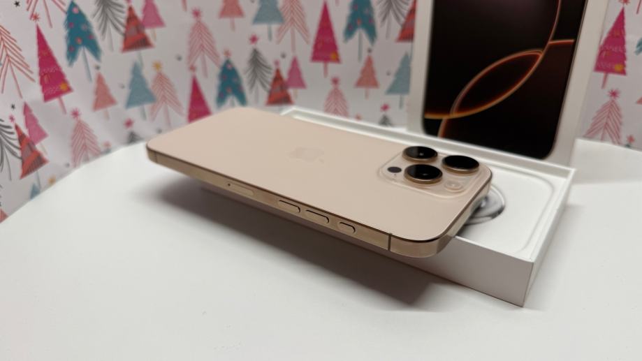 Prodajem IPhone 16 Pro Max od 256 GB memorije u Desert Titanium izvedbi ( u zlatnoj boji ).
