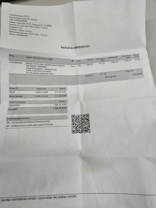 Korisnik je verificirao broj telefona u državi: Hrvatska