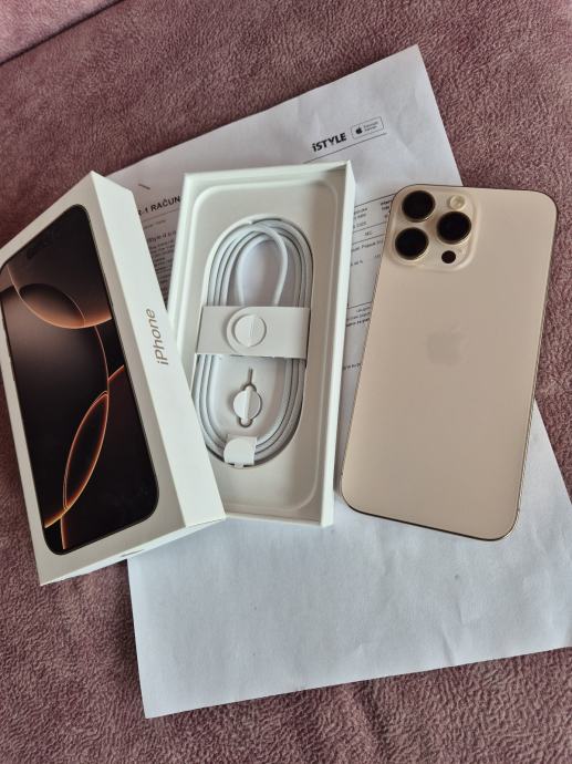 iPhone 16 Pro Max 256GB Desert Titanium. Očuvano, baterija 100%, račun (22.04.2025.), GARANCIJA.