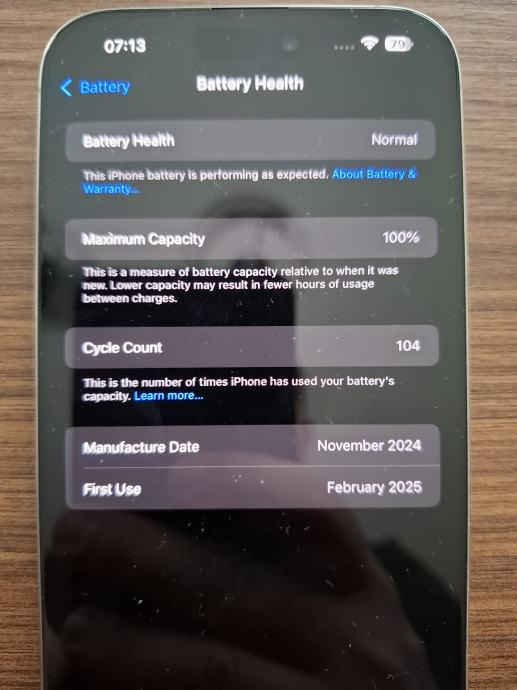 Baterija je na 100% sa 103 ciklusa, jamstvo do 02.2026.