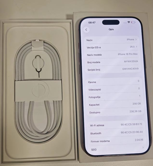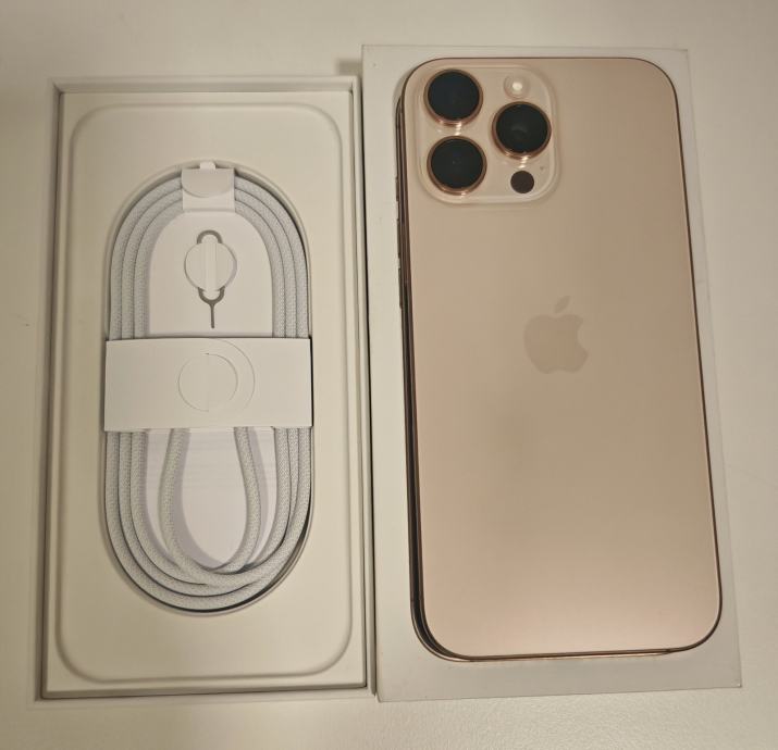 Prodajem rabljeni iPhone 16 Pro Max u zlatnoj boji s memorijom od 256 GB. Uređaj dolazi s originalnim kabelom i potpunom dokumentacijom. Stanje baterije je 98%, a telefon je u odličnom stanju bez oštećenja, kao novi!