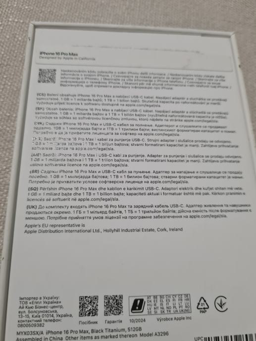 iPhone 16 Pro Max, Black, 512gb, na sve mreže, račun, garancija 23mj