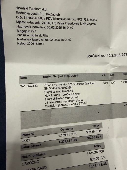 Preuzimanje: preferiram osobno preuzimanje uz provjeru uređaja