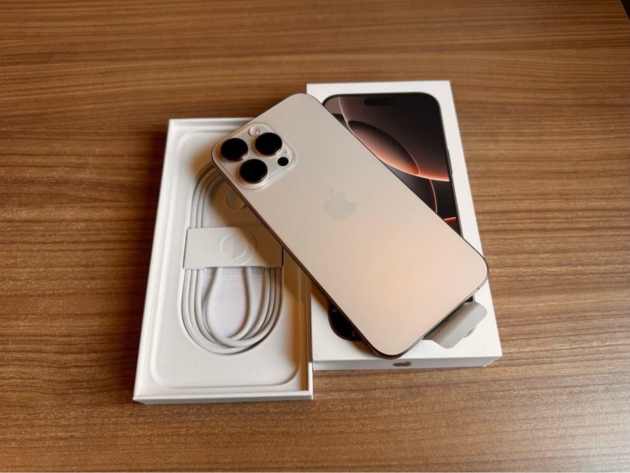 Prodajem iPhone 16 pro Max od 256 GB memorije u zlatnoj boji. Mobitel je u savršenom stanju bez ikakvih tragova korištenja. Uređaj je korišten pola godine te ima 100% kapaciteta baterije i 100 ciklusa. Uređaj kupljen u 8 mjesecu 2025 godine te ima aktivnu garanciju. Uređaj dolazi sa računom i jamstvom.
