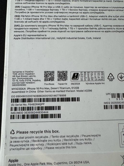 Iphone 16 Pro Max, Desert Titanium, 512GB